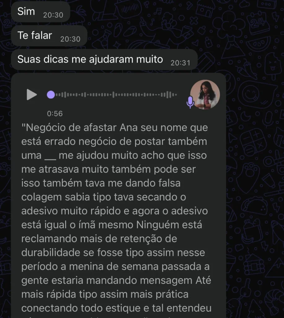 Hoje, levo toda essa experiência para o digital através de treinamentos, produtos e acompanhamentos estratégicos, para que lash designers de qualquer lugar possam aplicar um método comprovado, aprender a captar e fidelizar clientes, sair do “tentativa e erro” e construir uma carreira rentável, organizada e sustentável.